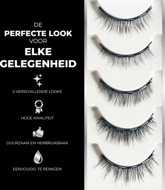 De 5 verschillende magnetische wimperextensions hebben een sterke hechting waardoor deze de hele dag perfect blijven zitten en waardoor je voor elke gelegenheid de juiste look kunt cre?ren. Dankzij de hoge kwaliteit ogen de nepwimpers zeer natuurlijk en het 3D-effect zorgt bovendien voor volumineuze wimpers. Zelfs tijdens het dansen in de club of springen op festivals hoef jij je geen enkele zorgen te maken over loshangende nepwimpers.