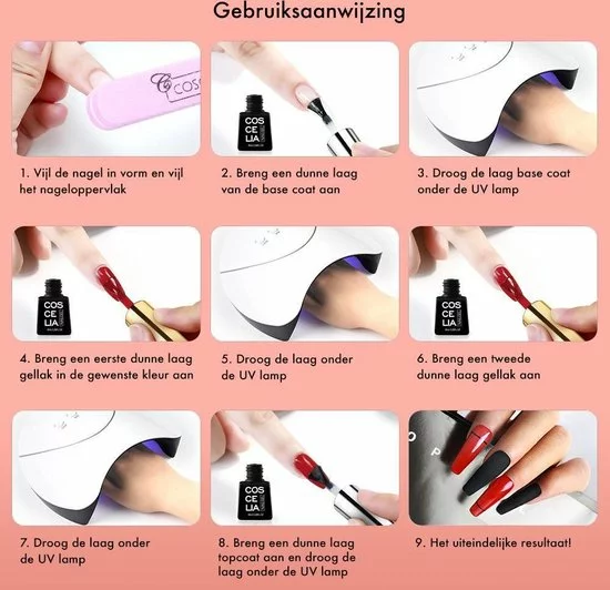 Altijd en overal mooie en nette gelakte nagels in kleuren en stijlen zoals jij dat wil. De set bevat alles wat je nodig hebt om eindeloos te kunnen experimenteren. De gellak is geschikt voor zowel de handen als voeten. Door de UV LED lamp 36W zijn de nagels binnen enkele seconden droog en geen geknoei meer! 100 nailtips/ kunstnagels in verschillende maten meegeleverd. Deze nagelset bevat niet alleen gellak en nailart, maar ook nagelverzorgingsproducten.