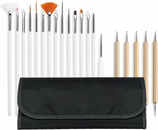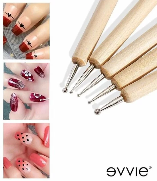 Gek op nagellak? Maak jij er ware kunstwerkjes van? Met deze Evvieยฉ set van 15 verschillende nail art penselen en set van 5 dotting tools teken je in een handomdraai de mooiste patronen op je nagels. Van stip tot streep, van marmer tot bloemmotief, jouw nagels zien er nooit meer saai uit!