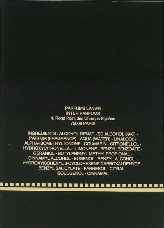 Basisnoten: Amber, Sandelhout, Patchouli, Muskus, Vanille, Benzoine en Vetiver