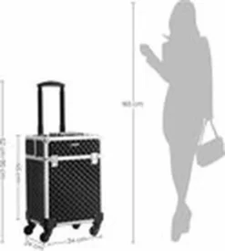 Uitgang 🎁 ZAZA Home Cosmetische Koffer, Trolley, Make-up Case Met Handvat, 4 Universele Wielen, 4 Uitschuifbare Dienbladen, Make-up Tas, Voor Reizen, Zwart JHZ013B01 🤩