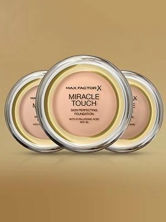 Max Factor Miracle Touch Foundation SPF30 is het iconische 3-in-1 product dat zorgt voor een frisse en egale huid, waar je ook bent. De geliefde compact-naar-vloeibare textuur is een concealer, foundation en poeder in ??n om de huid om direct een natuurlijke, onberispelijke finish te geven. De lichtgewicht, compacte formule veranderd door de warmte van de vingers in een vloeibare foundation en glijdt over de huid om grove pori?n, oneffenheden en fijne lijntjes te camoufleren. Toevoeging van hyaluronzuur hydrateert en voedt de doffe huid en laat deze stralen. SPF30 helpt de huid te beschermen tegen schadelijke AVA,- en AVB stralingen en vermindert het risico op huidveroudering, veroorzaakt door zonschade. De Miracle Touch make up Foundation is eenvoudig aan te brengen en verspreidt moeiteloos over de huid voor een egale finish. De compacte verpakking maakt het eenvoudig om de foundation mee in je handtas te nemen, voor een snelle en praktische touch-up on the go. Gebruik de toegevoegde spons applicator om de dekking, daar waar nodig, naar wens op te bouwen.