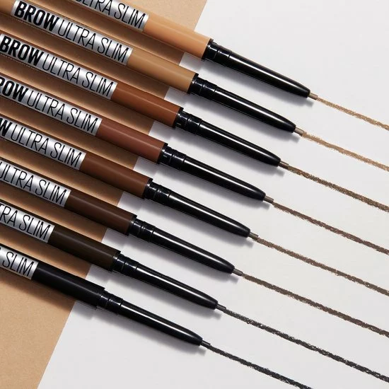 Kale plekjes in de wenkbrauwen zijn verleden tijd met het wenkbrauwpotlood Ultra Slim van Maybelline New York. Het zachte, dunne wenkbrauwpotlood zorgt voor een subtiel effect waardoor je jouw wenkbrauwen subtiel vult en kleurt.