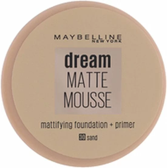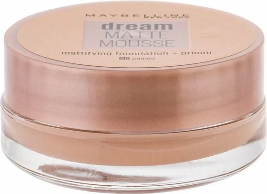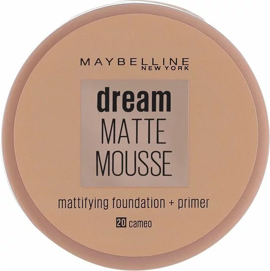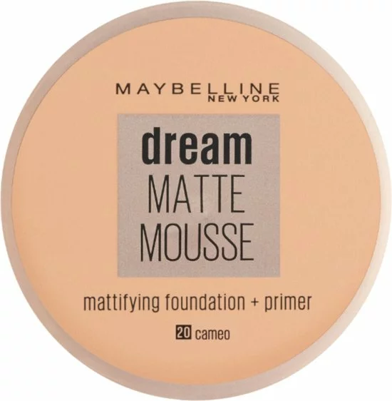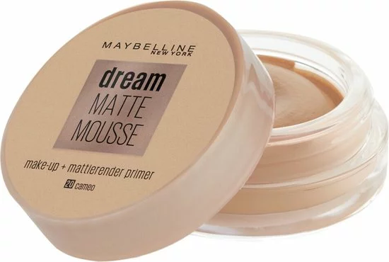 Maybelline New York Dream Matte Mousse Mattifying Foundation Primer 020 Cameo is een foundation en primer met medium dekking voor een 100%-fluwelig, matte teint.