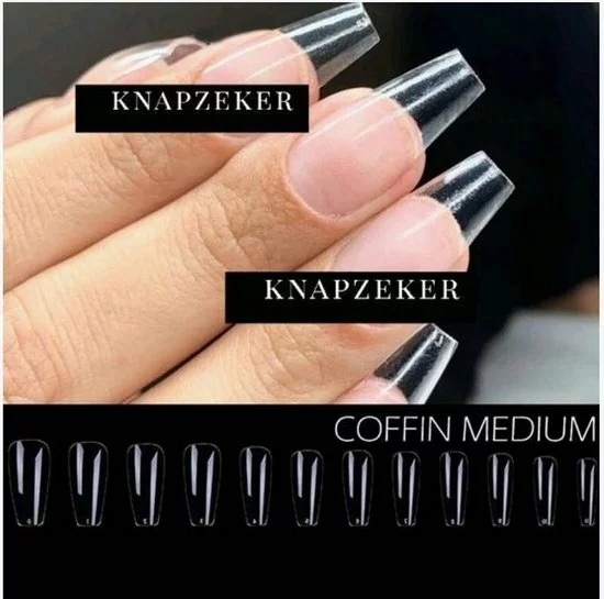 Gel Tips Nail Extension Full Cover medium Coffin Ballerina False Tips nepnagels 240ps Fake nails- Nageltips Transparant / Clear Tips + nagelvijl + lijm