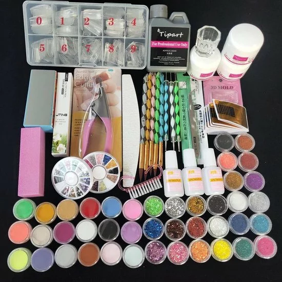 Een complete 73 delige acryl set van vloeistoffen, poeders/ glitters en alle andere benodigdheden voor het zetten van acryl nagels. Geschikt voor professioneel gebruik of thuismanicure. In ??n pakket vindt u alle benodigde accessoires voor nagelstyling. Geschikt voor het voordelig cre?ren van mooie en langdurige glans nageltips..