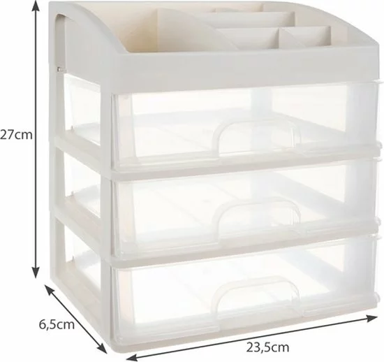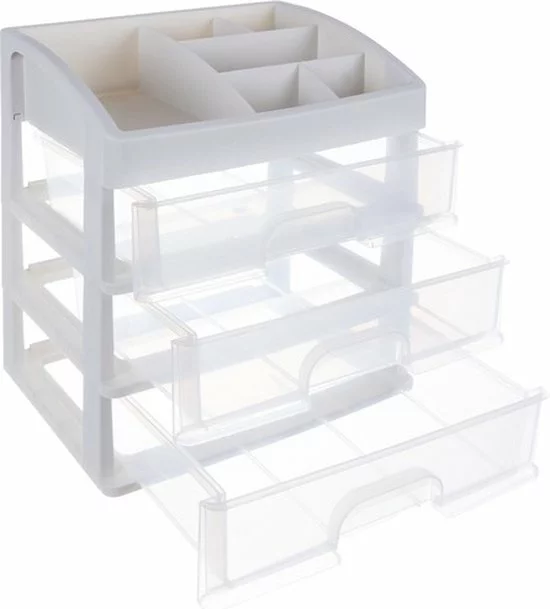 De organizer is gemaakt van transparant materiaal, waardoor je duidelijk kunt zien wat erin zit, zodat je snel een item kunt vinden om het te pakken. Het heeft 3 transparante lades van hetzelfde formaat.