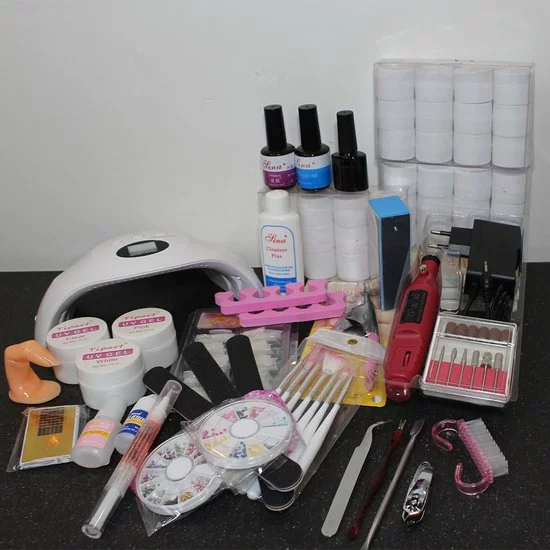 Een complete 66 delige acrylnagel set van Tipart met vloeistoffen, kleuren (36 kleuren Acryl), elektrische nagelvijl, UV lamp en alle andere benodigdheden voor het zetten van goede nepnagels. Geschikt voor professioneel gebruik of thuismanicure. In ??n pakket vindt u alle benodigde accessoires voor nagelstyling. Geschikt voor het voordelig cre?ren van mooie en langdurige glans nageltips.